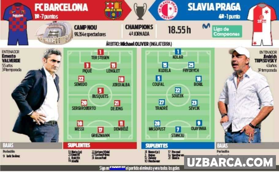 Barselona vs Slavia Praga, taxminiy tarkiblar