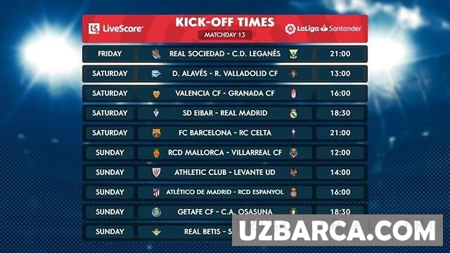 LaLiganing 13-turidan o'rin olgan o'yinlar ro'yxati