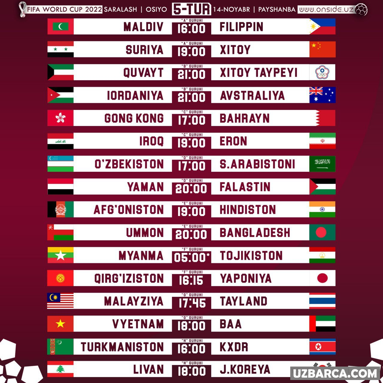 Ertaga JCH-2022 saralash 2-bosqichining 5-tur uchrashuvlariga start beriladi