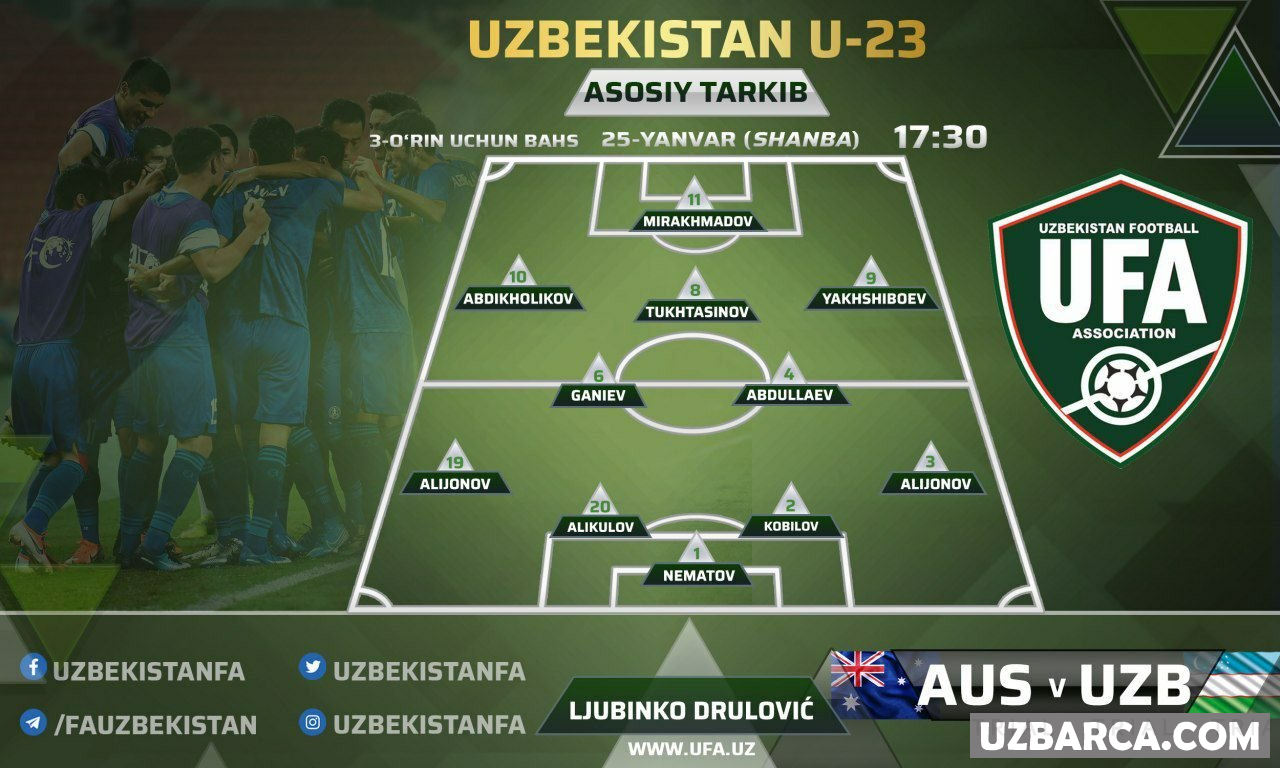 AFC U-23.O'zbekistonning bugungi o'yin uchun asosiy tarkibi ma'lum