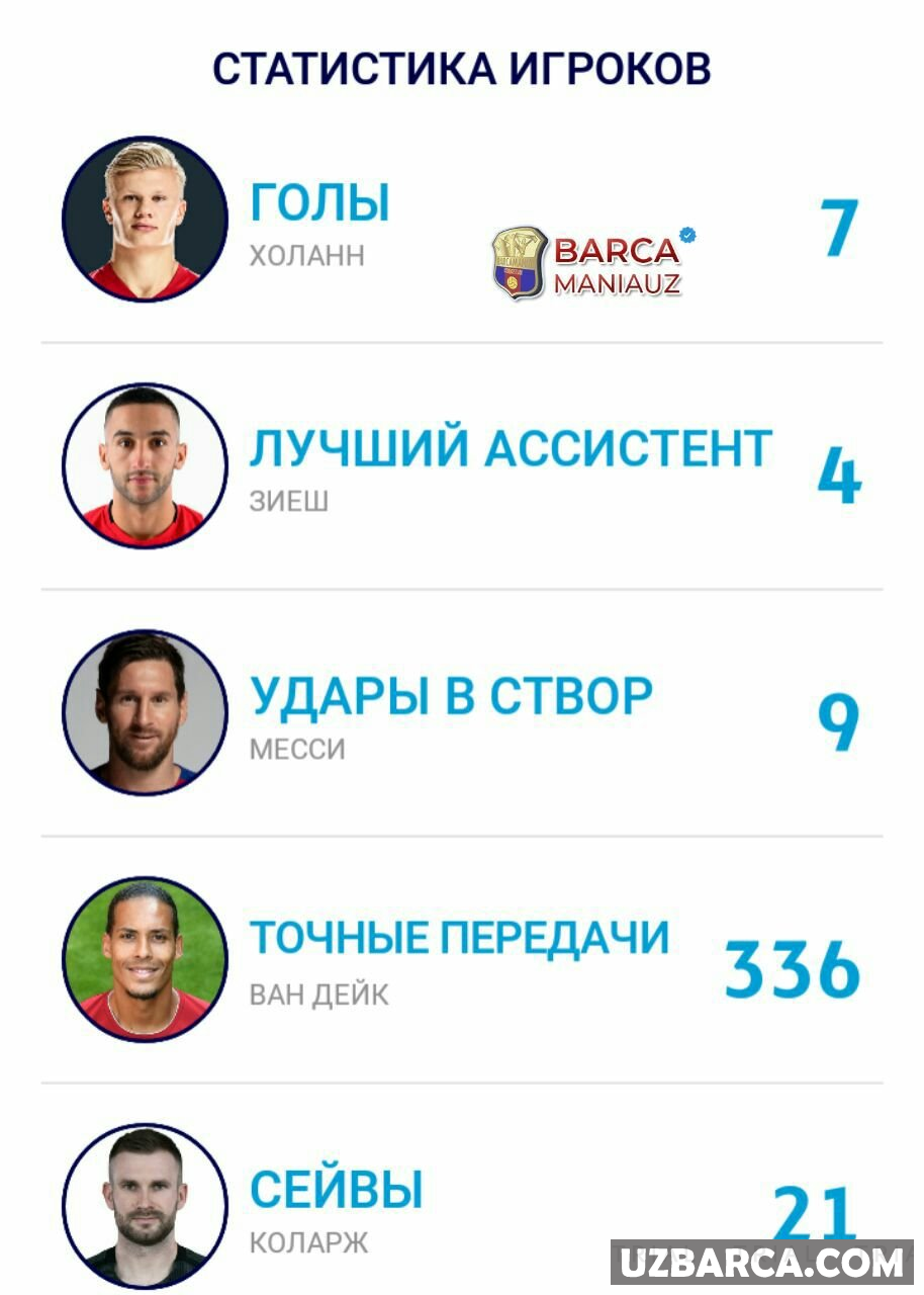 Hozirda Chempionlar Ligasida har xil statistikada yetakchi futbolchilar: