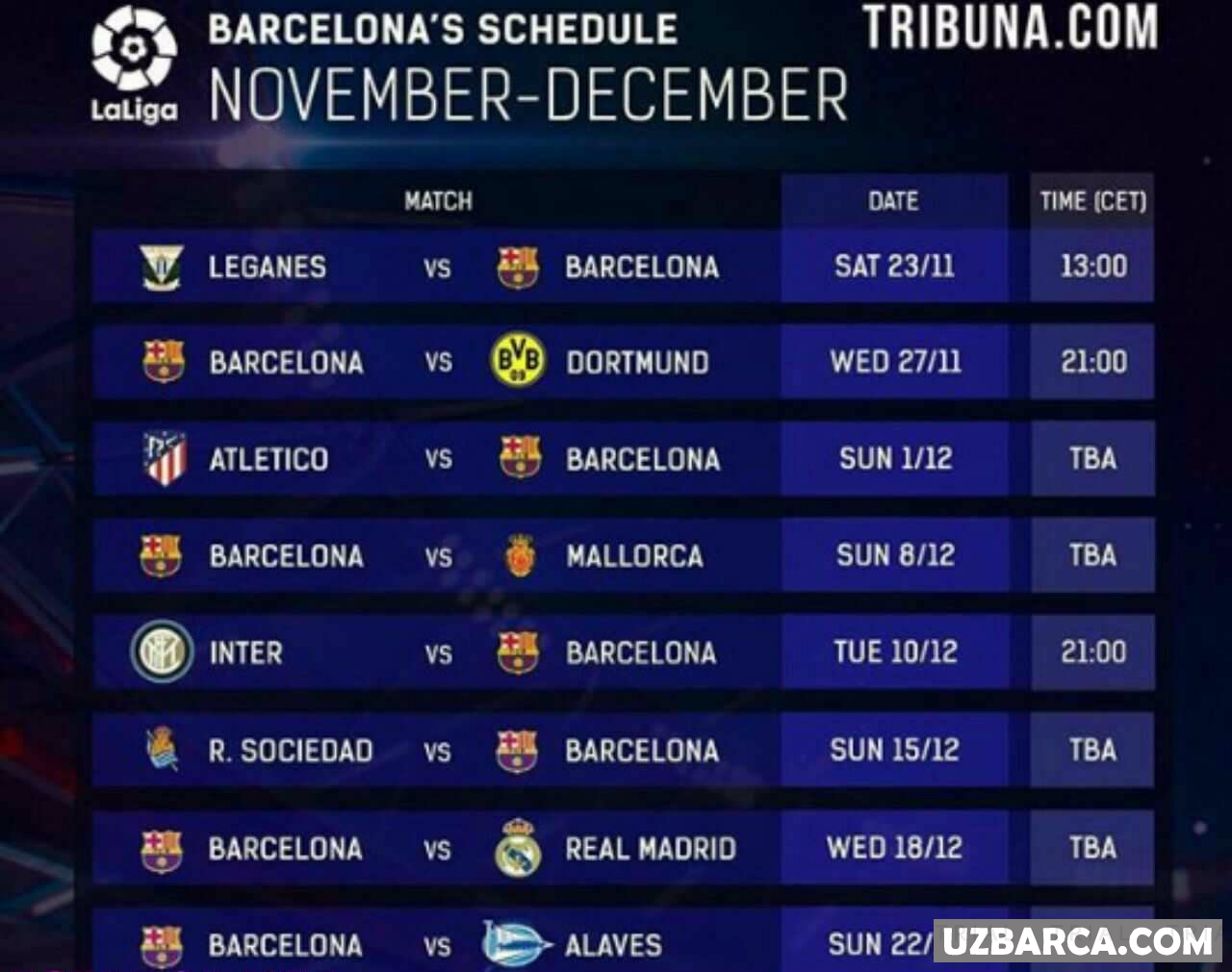 "Barcelona"ning noyabr va dekabr oyidagi uchrashuvlari