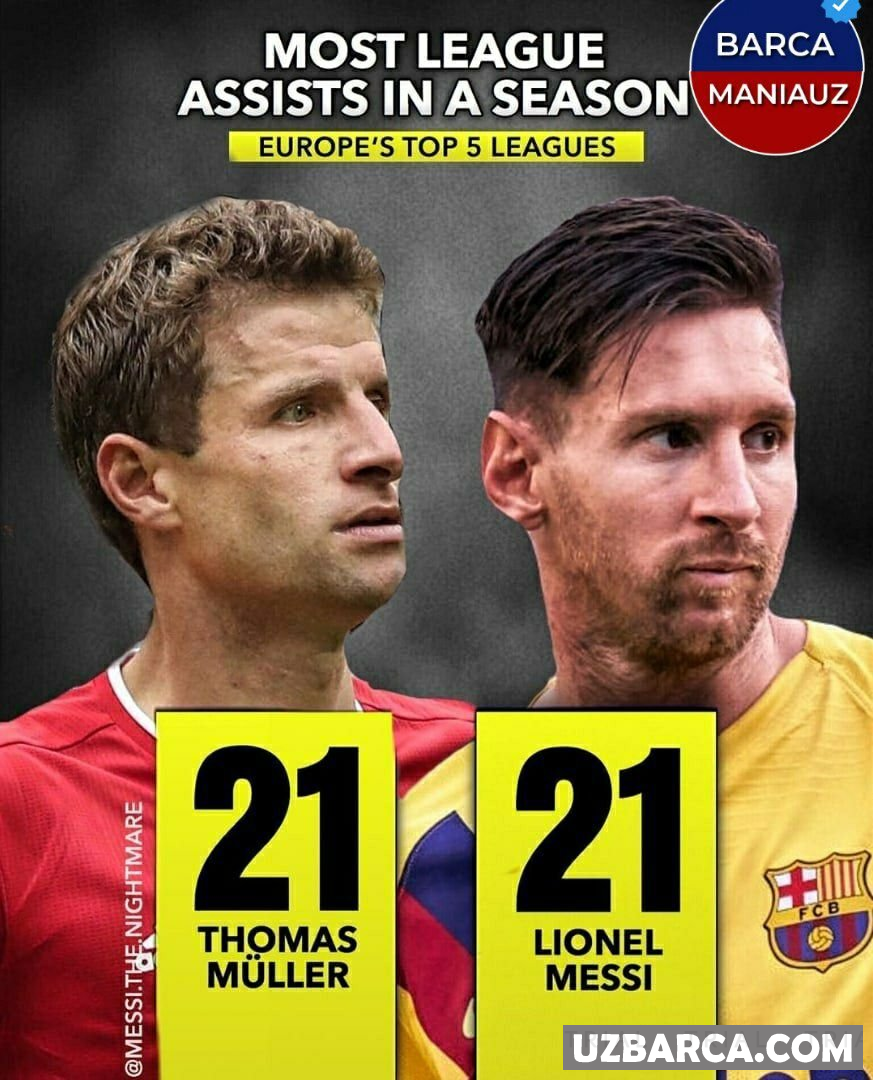 Evropa 5 chempionatida bir mavsum davomida assist bo'yicha rekordlar.