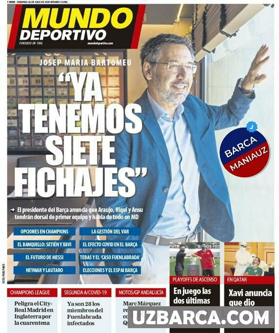 ■ "Barselona" prezidenti Bartomeo Arauxo, Puig va Fatini kelasi mavsumda birinchi jamoaga qo'shilishlarini aytdi. Shuningdek, u boshqa mavzular, xususan "Chempionlar Ligasi" variantlari va Lautaro bilan Neymarni transferi haqida gapirdi.