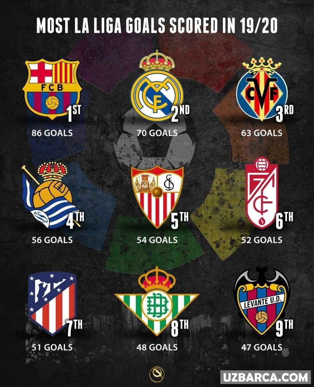 Ushbu mavsum La Ligada eng ko'p gol urgan jamoalar.