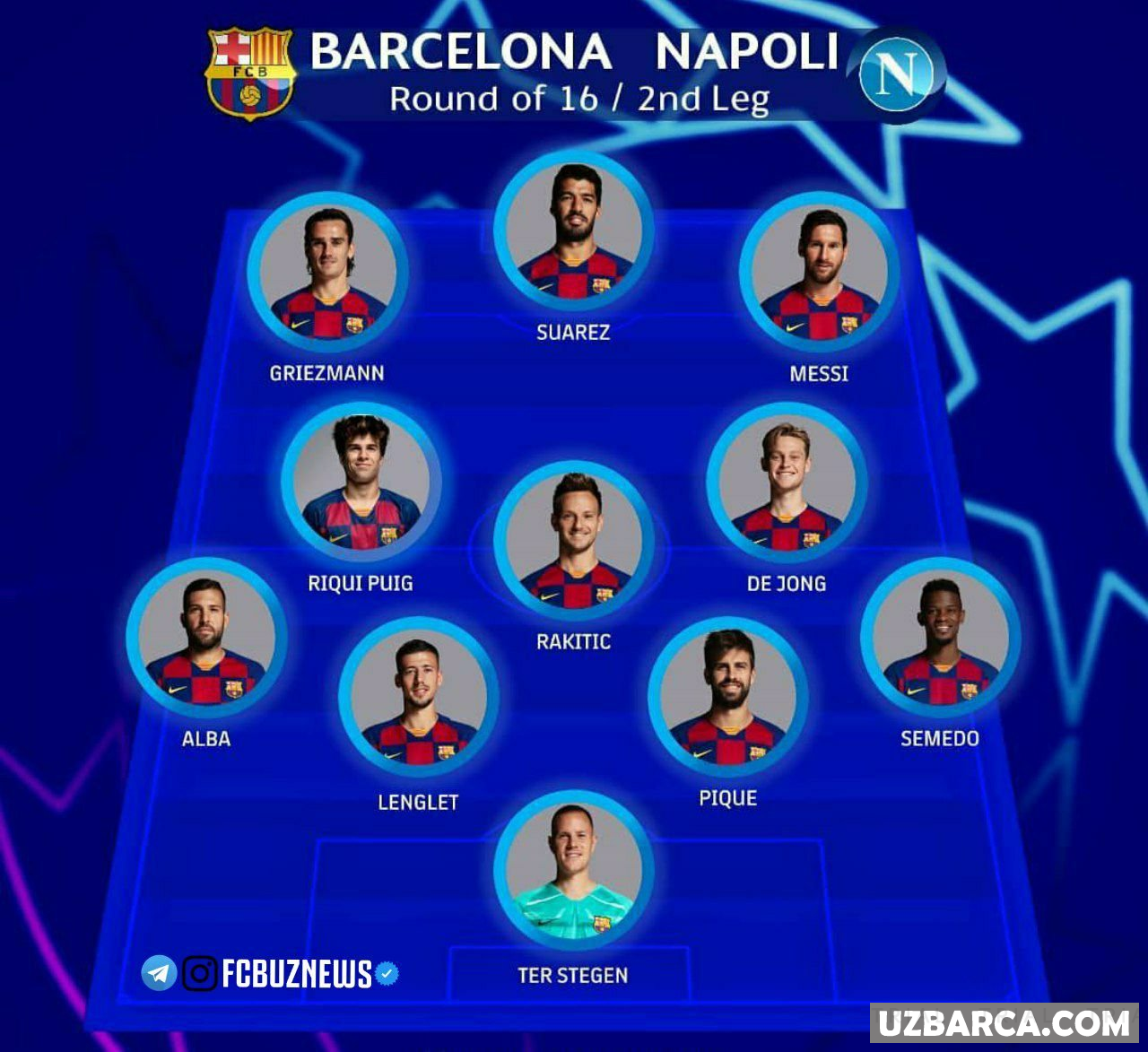 Barcelonaning" "Napoli" ga qarshi o'yin uchun taxminiy tarkibi