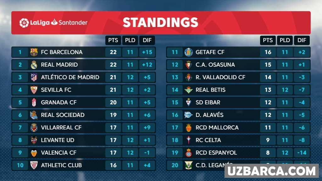 La Liganing ayni damdagi turnir jadvali bilan tanishing