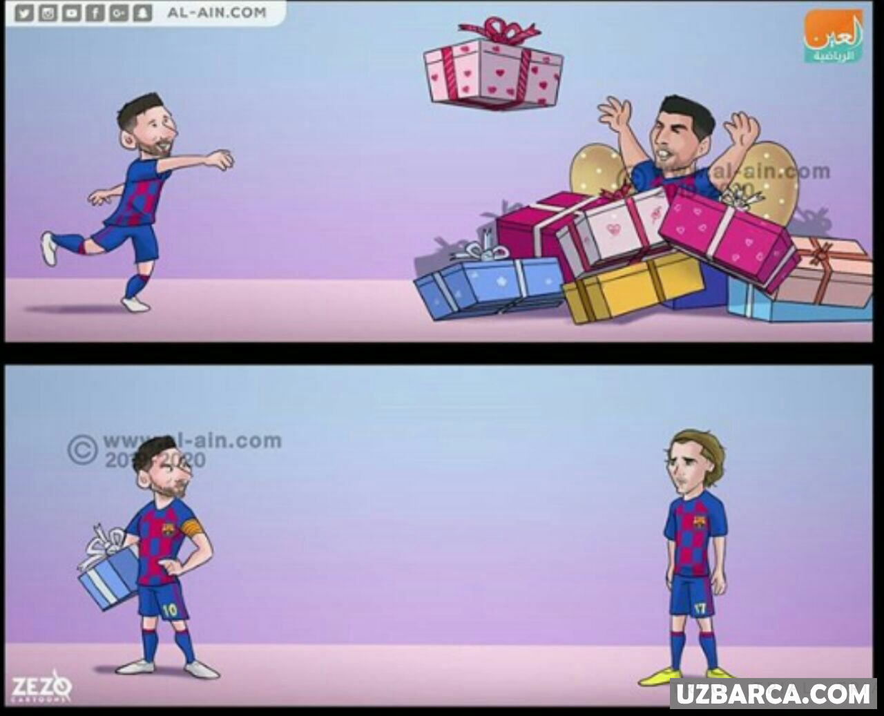 Karikatura.Messi Griezmann bilan kelisha olmayapti