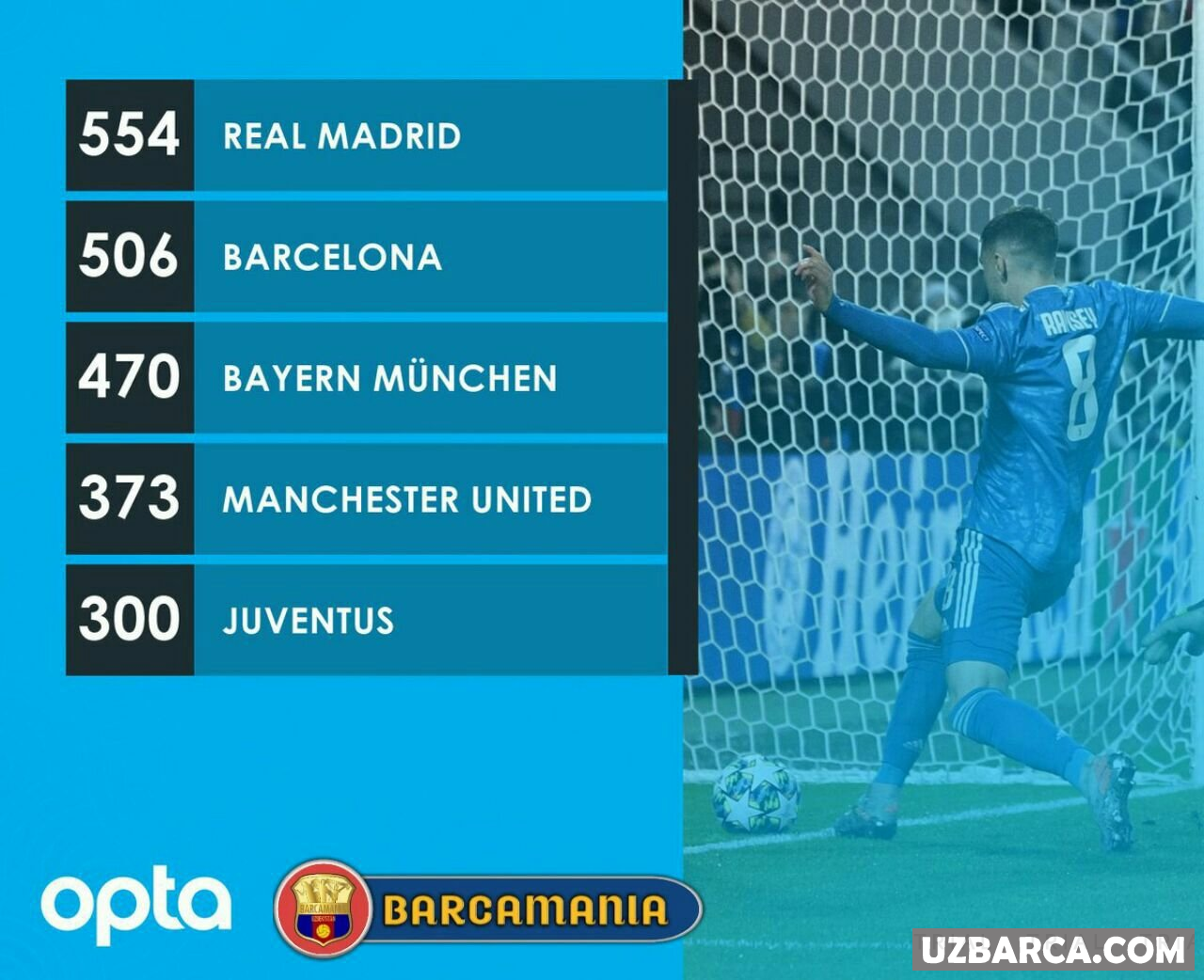 "Chempionlar Ligasi"da eng ko'p gol urgan klublar