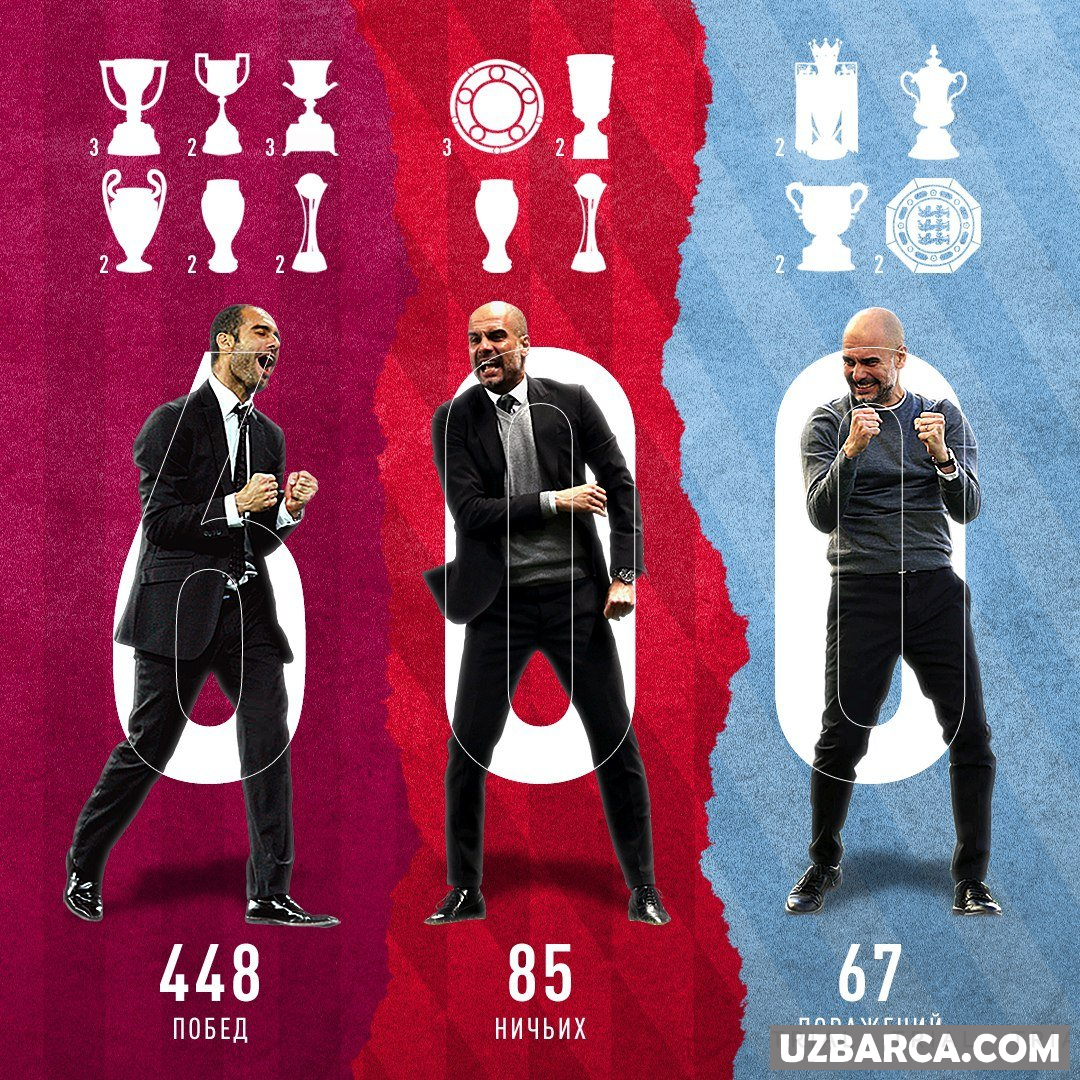 Pep Gvardiolaning murabbiylik faoliyatidagi umumiy statistikasi