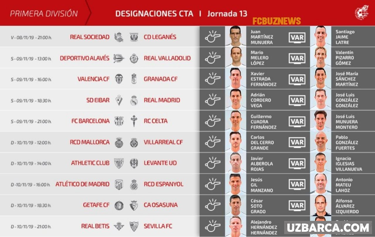 LaLiga 13-tur o'yinlarini boshqarib boradigan hakamlar brigadasi ma'lum bo'ldi!
