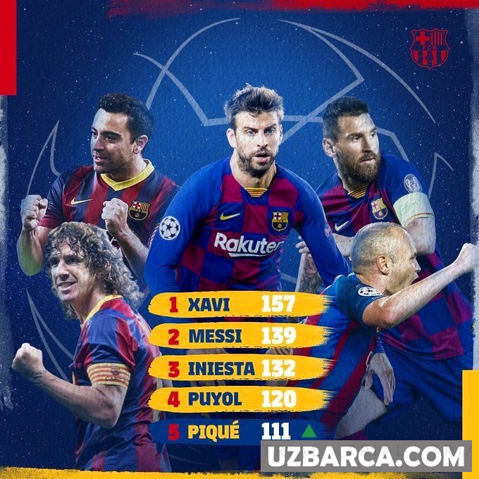 "Barcelona safida chempionlar ligasida eng ko'p o'yin, o'tkazgan futbolchilar ichida Jerard Pike 5-o'ringa ko'tarilib oldi"