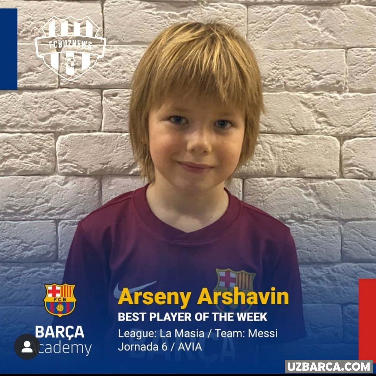 Andrey Arshavinning o'g'lini Barcelona akademiyasida xafta o'yinchisi deb e'tirof etishdi.