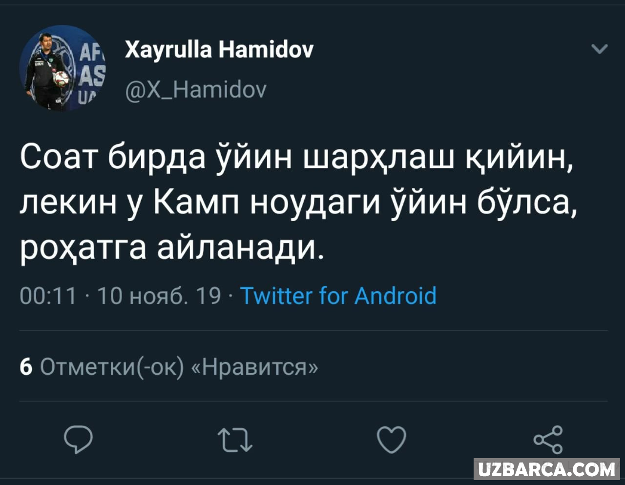 Messining "Selta"ga jarimadan urgan 2-goliga Xayrullo Xamidovni sharxi — Rostan bu yigit o'zga sayyoralik ! Jumanazar og'a borgan bo'lsalar ko'rmagan bo'lsa agar bu yigitni ! Messi bugungi o'yinda 3 ta "penalti"dan 3 ta gol .