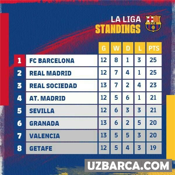 Ayni damda Laliga jadvali