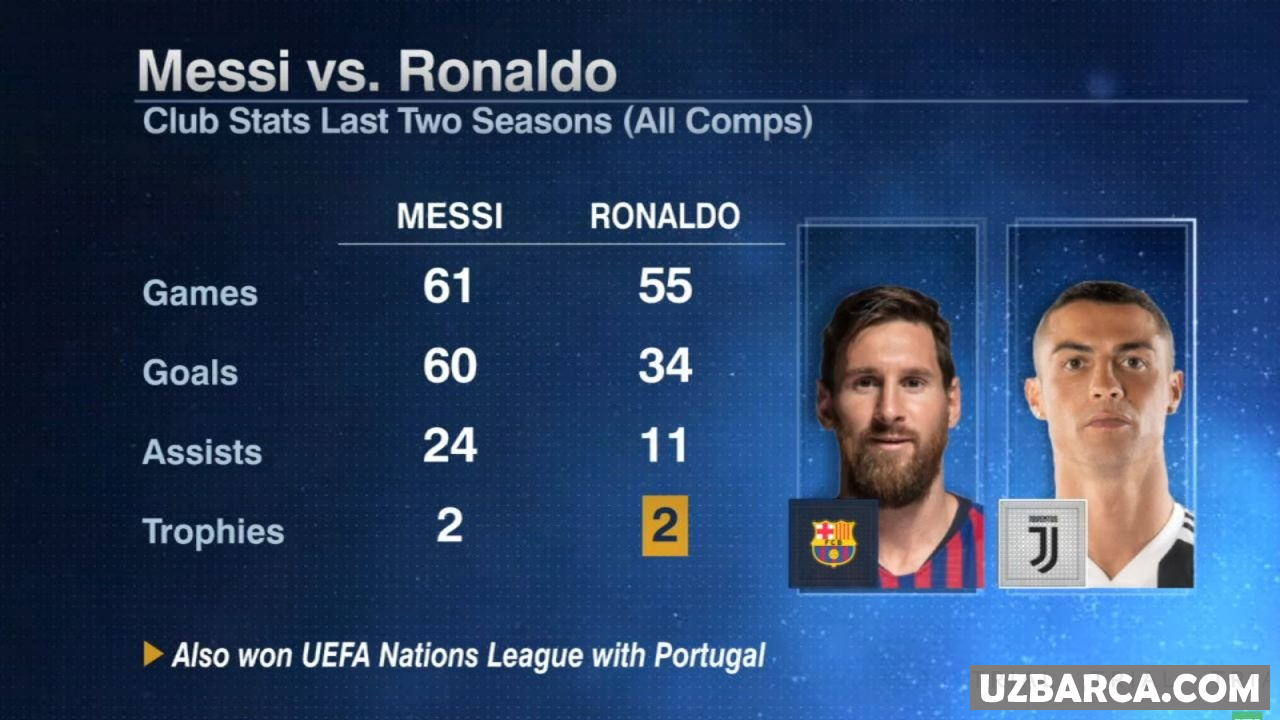 Messi va Ronaldoning so'nggi ikki mavsumdagi statistikasi