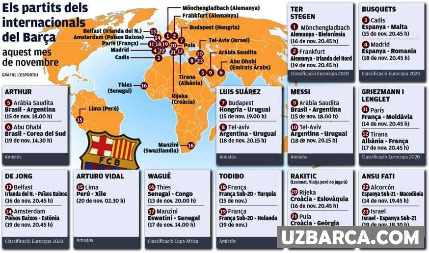 "Barcelona" futbolchilari terma jamoa safida qachon o'yin o'tkazishadi