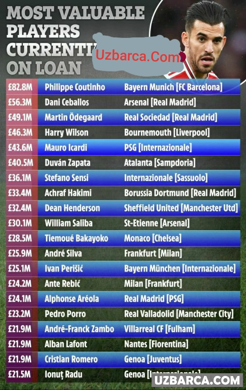 Hozirda ijarada bo'lgan eng qimmat futbolchilar