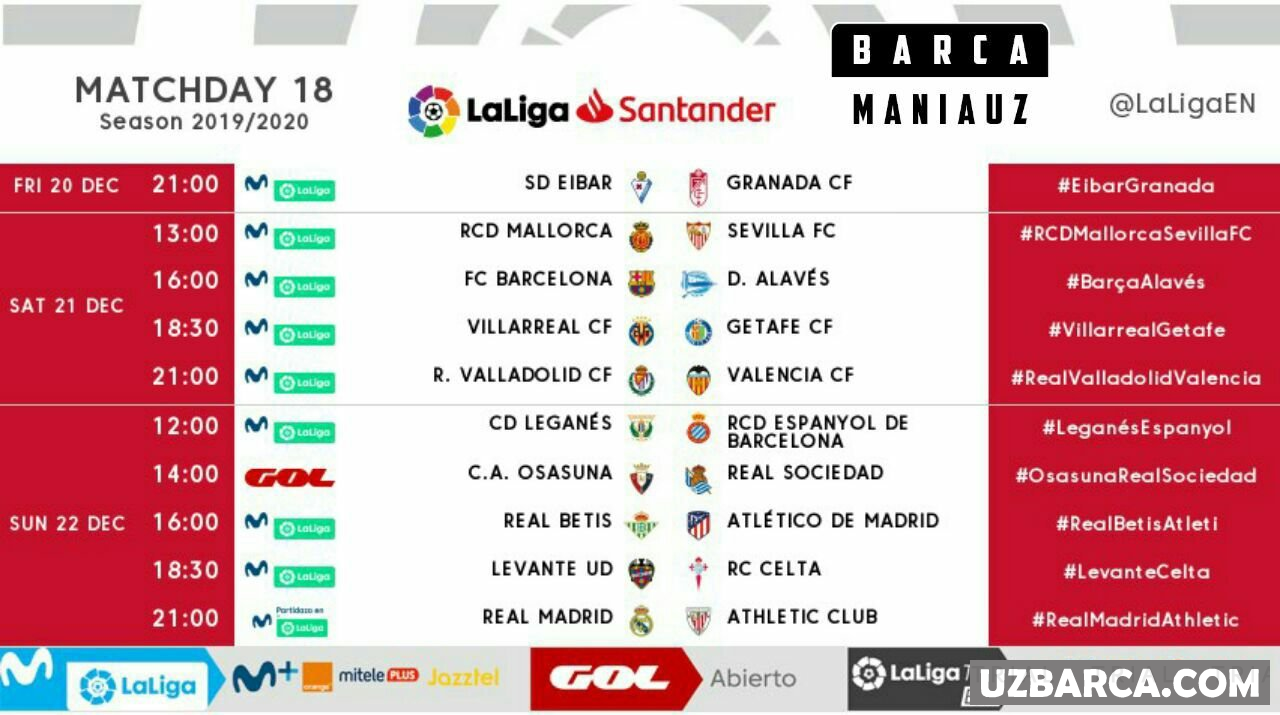 Rasman: La Liga 18-tur o'yinlarining boshlanish vaqti ma'lum
