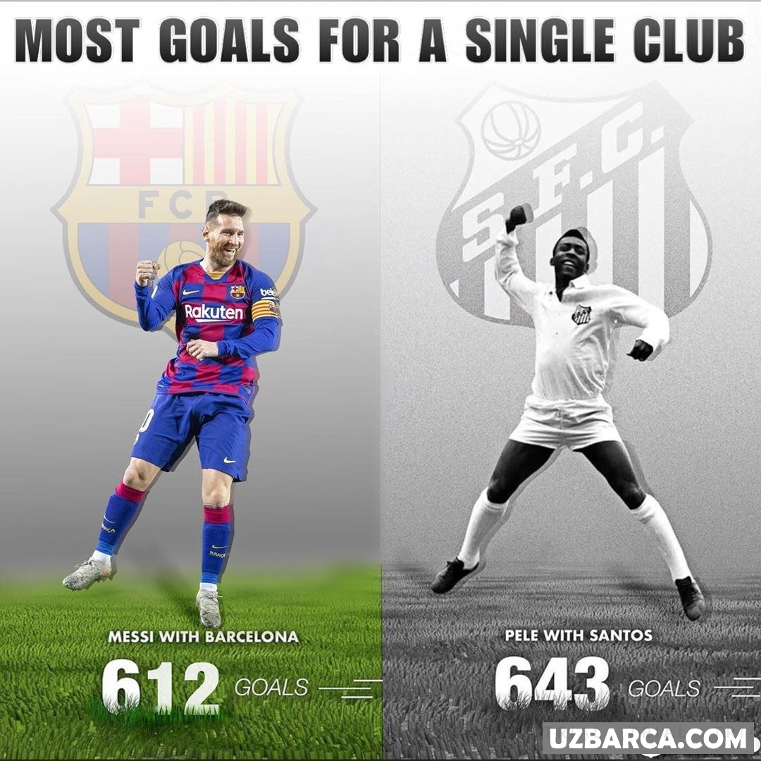 Bir klub safida eng ko'p gol urgan ikki futbolchi. Messi rekordga yaqinlashmoqda.