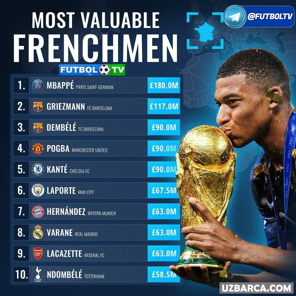 Ayni damdagi eng qimmat fransuz futbolchilar