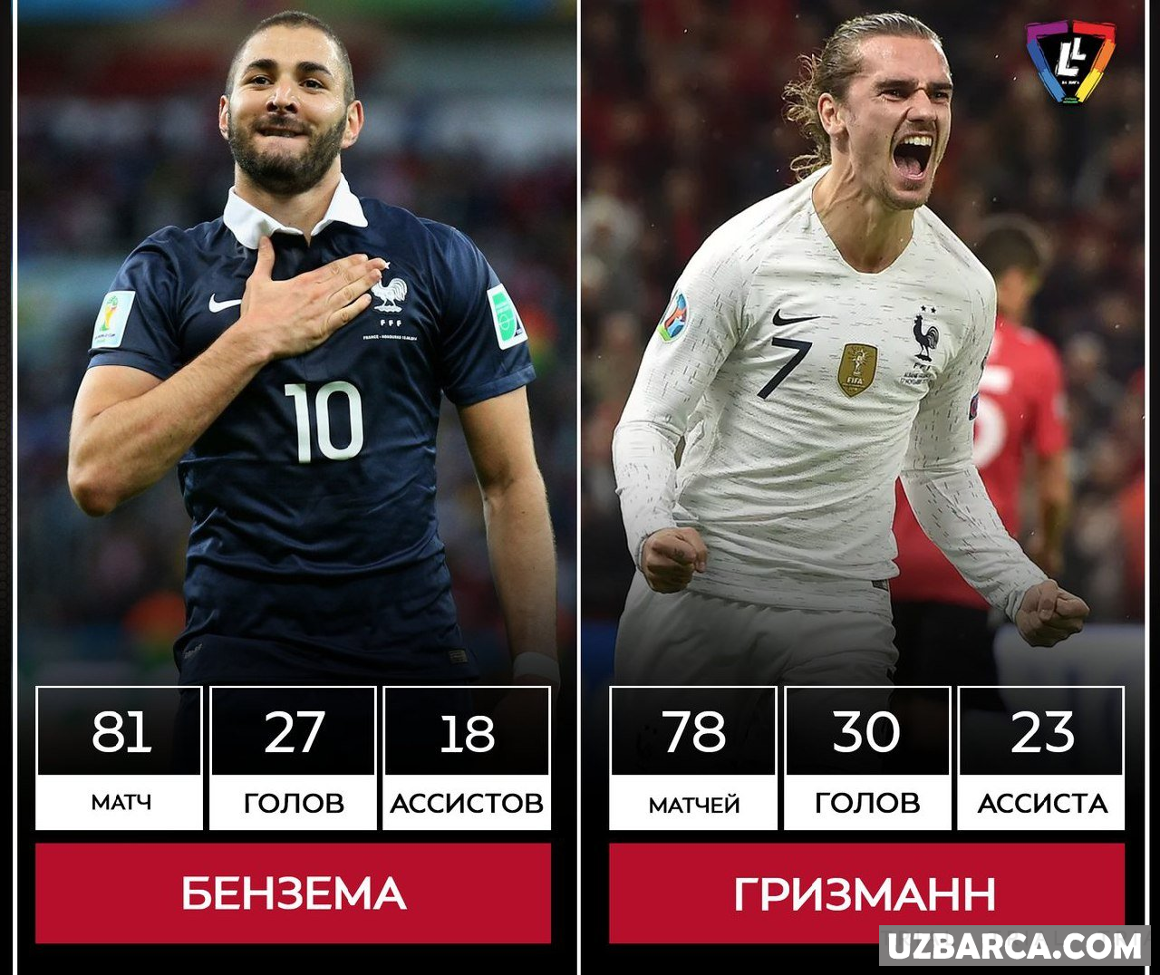 Karim Benzema hamda Antoine Griezmanning Fransiya terma jamoasidagi statistikasi