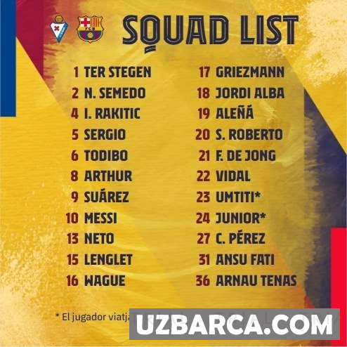 Eybar 0:3 Barcelona uchrashuv yakunladi.