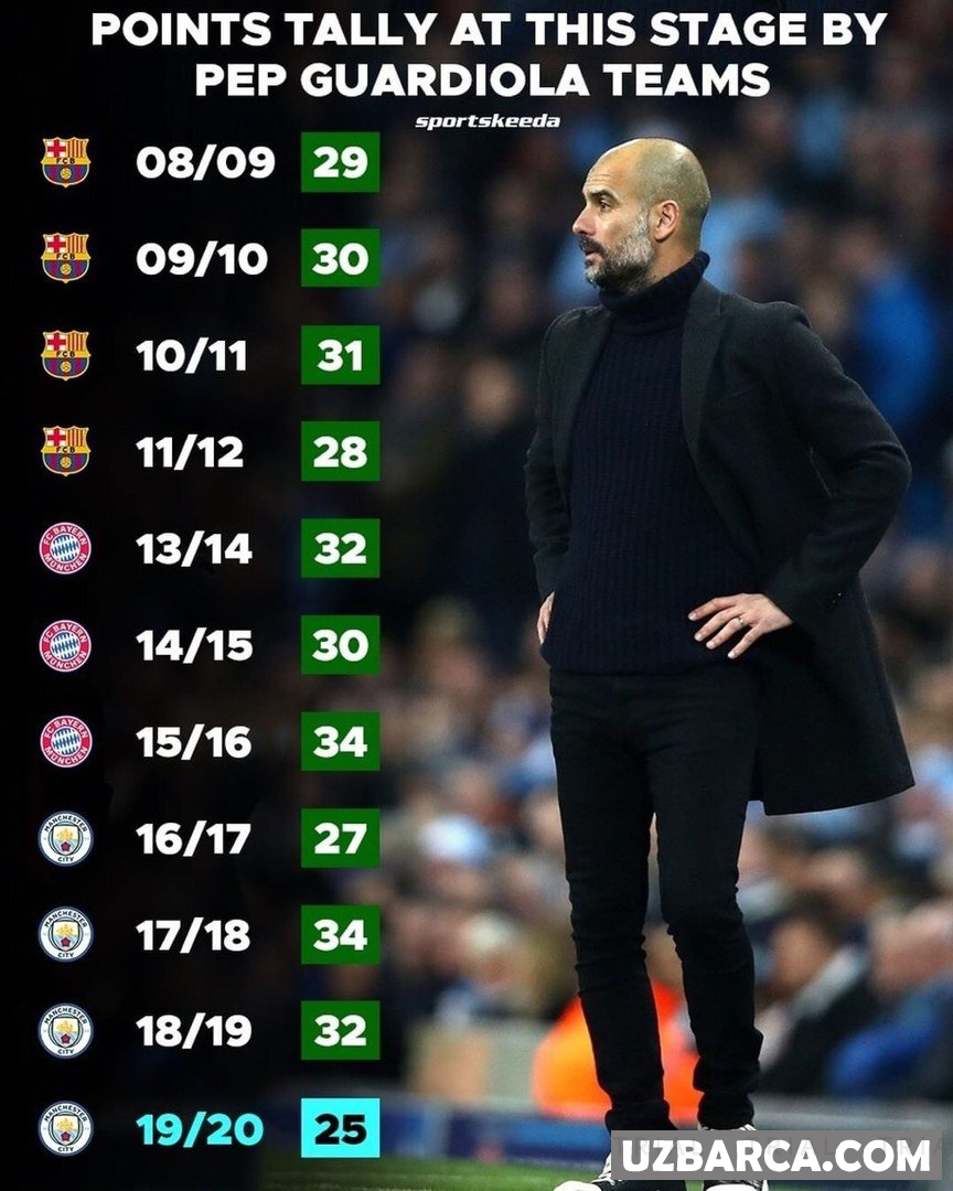 Gvardiolaning murabbiylik faoliyati davomida ichki chempionatda 12-turgacha to'plagan ochkolari