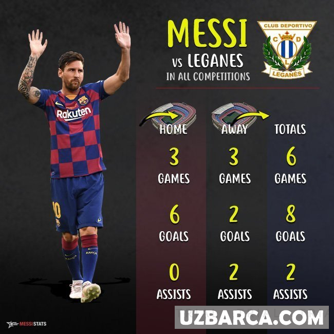 Messining "Leganes"ga qarshi kechgan o'yinlardagi umumiy statistikasi