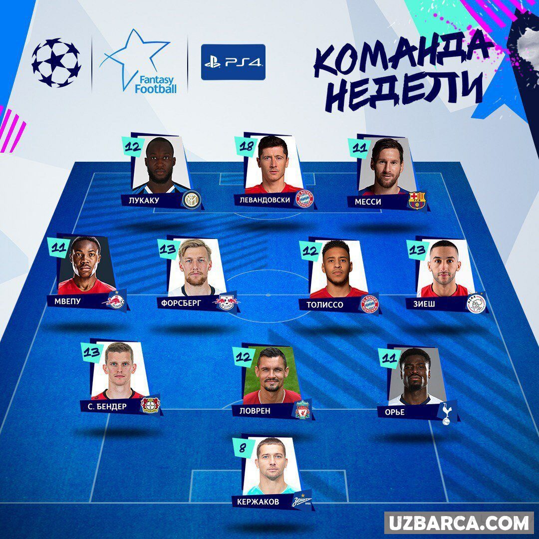 Chempionlar Ligasining ushbu haftadagi ramziy jamoasi e'lon qilindi