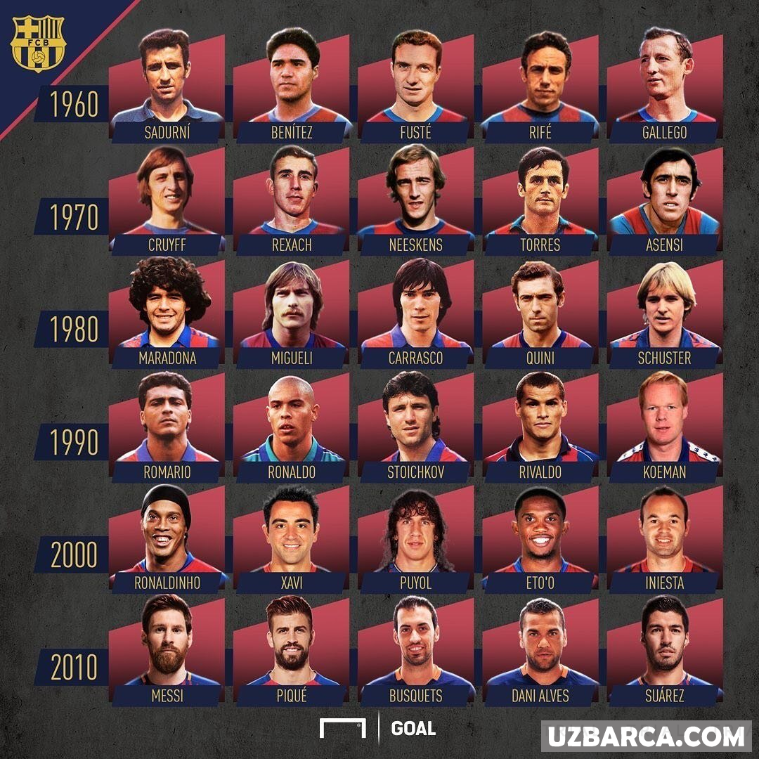 "Barcelona" tarkibida 120 yil ichida to'p surgan va to'p suryotgan afsonaviy o'yinchilari bir rasmda