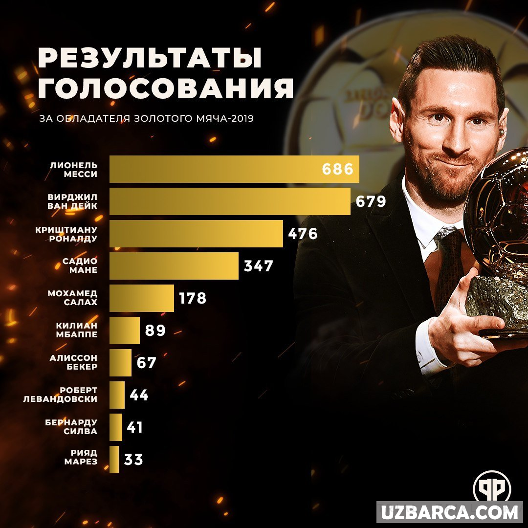 "Oltin to'p"-2019 uchun to'plangan ovozlar