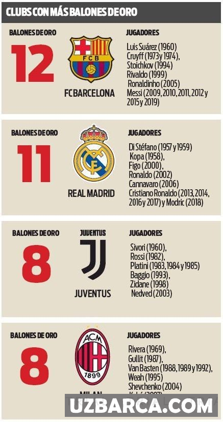 "Oltin toʻp"ni eng koʻp qoʻlga kiritgan klublar va shu klublardagi futbolchilarning roʻyxati