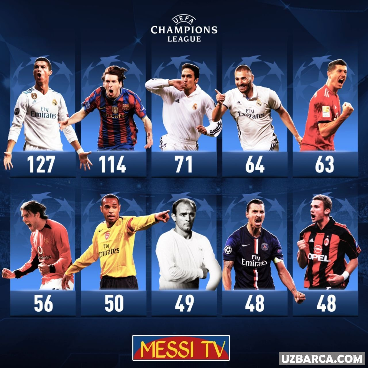 "Chempionlar ligasida eng ko'p gol urgan futbolchilar"