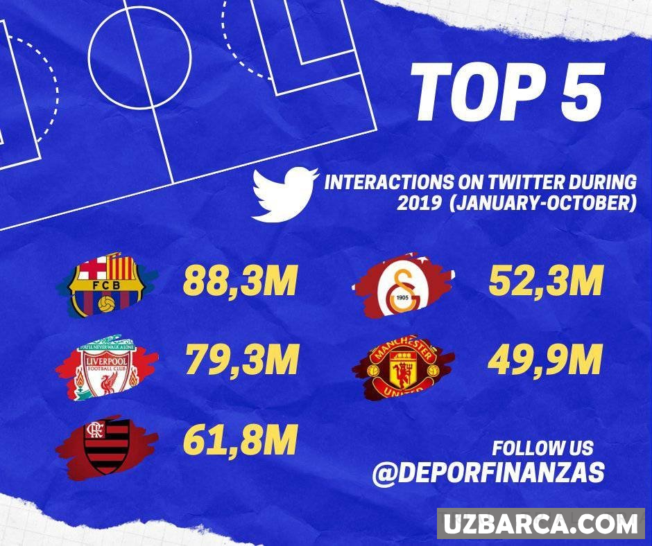 Twitter tarmog'ida eng ko'p obunachiga ega jamoalar