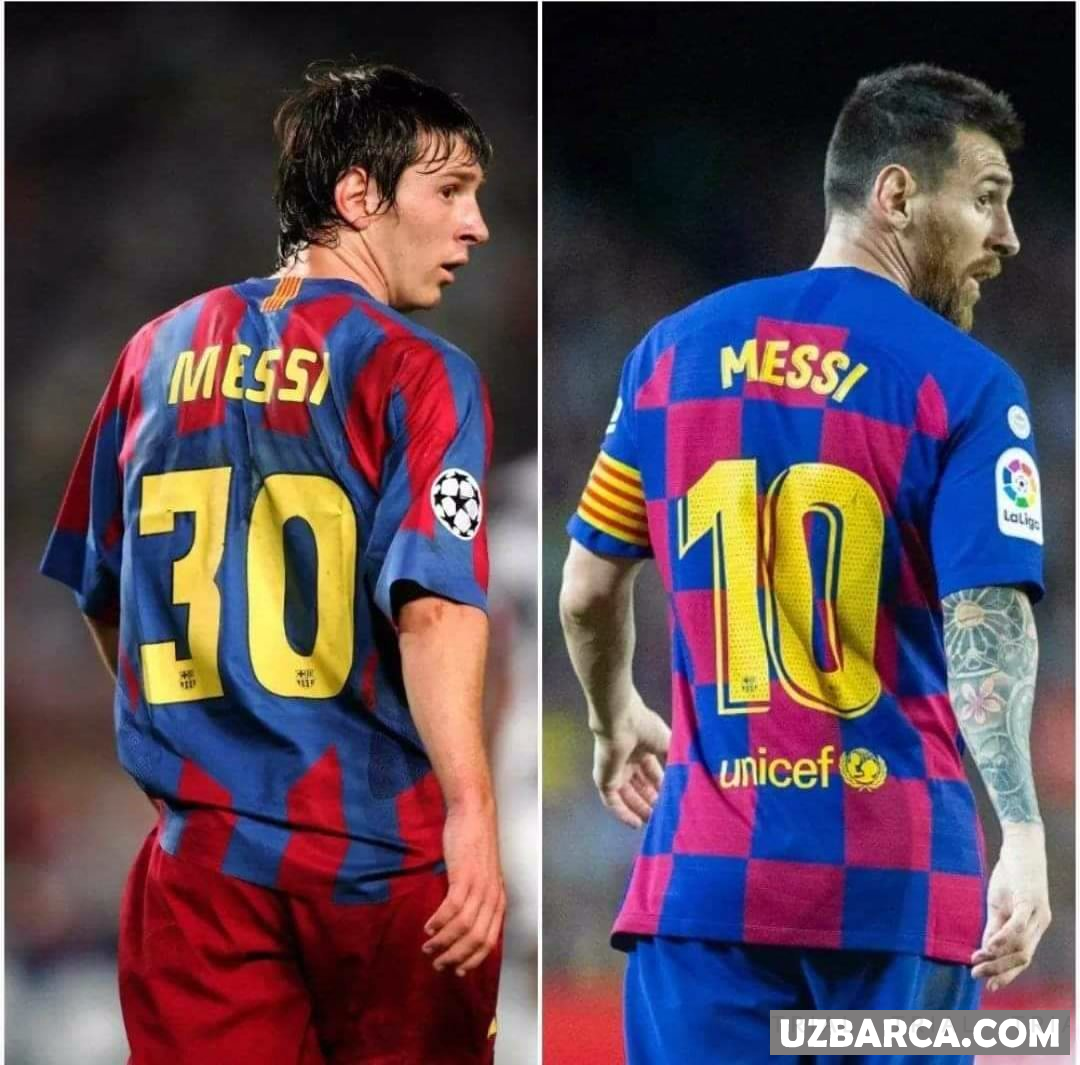 Oldingi va hozirgi paytda bir xil tushgan ekan. Messining debyut uchrashuvidagi rasmi va oxirgi uchrashuvidan rasmi ya'ni Sevilla ga qarshi bahsdagi rasmi.