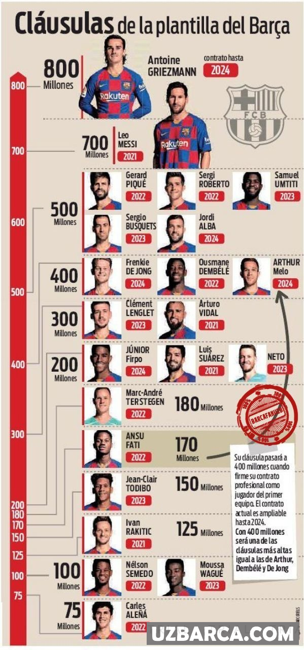 "Barselona" futbolchilarning shartnoma muddatilari va tovon pullari