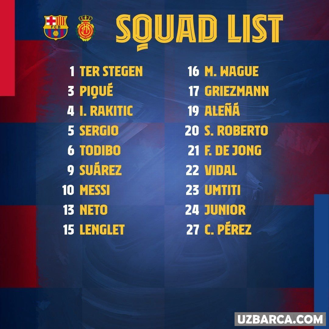 "Barselona"ning "Mallorca"ga qarshi uchrashuv uchun qaydnomasi ma'lum