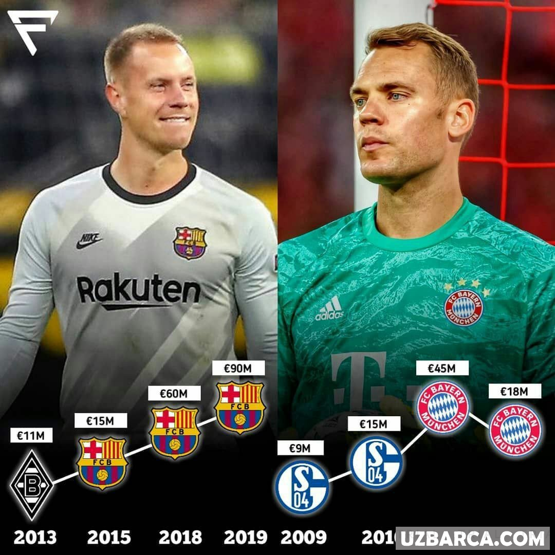 Ter Shtegen hamda Noyerning transfer narxining o'zgarishi