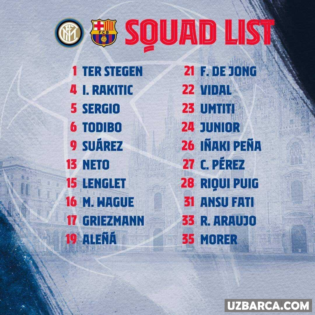 Barselonaning Interga qarshi qaydnomasi ma'lum