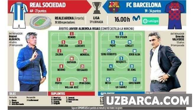 Real Sosiedad vs Barselona taxminiy tarkiblar