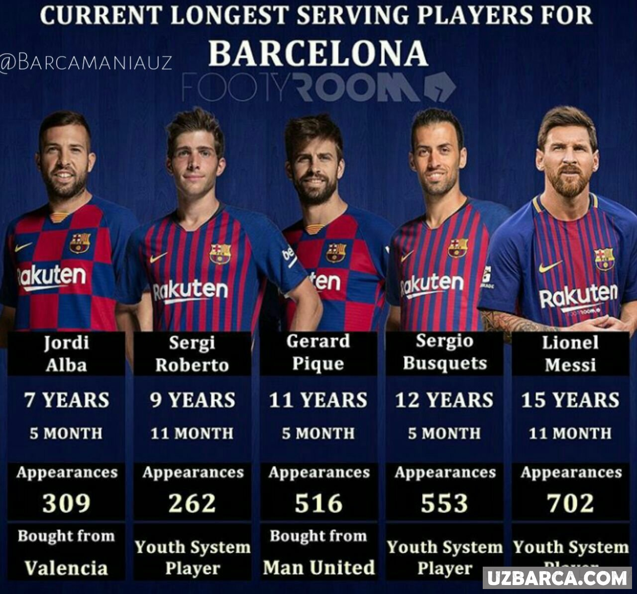 "Barselona"da uzoq vaqtdan buyon o'ynab kelayotgan ayni damdagi futbolchilar