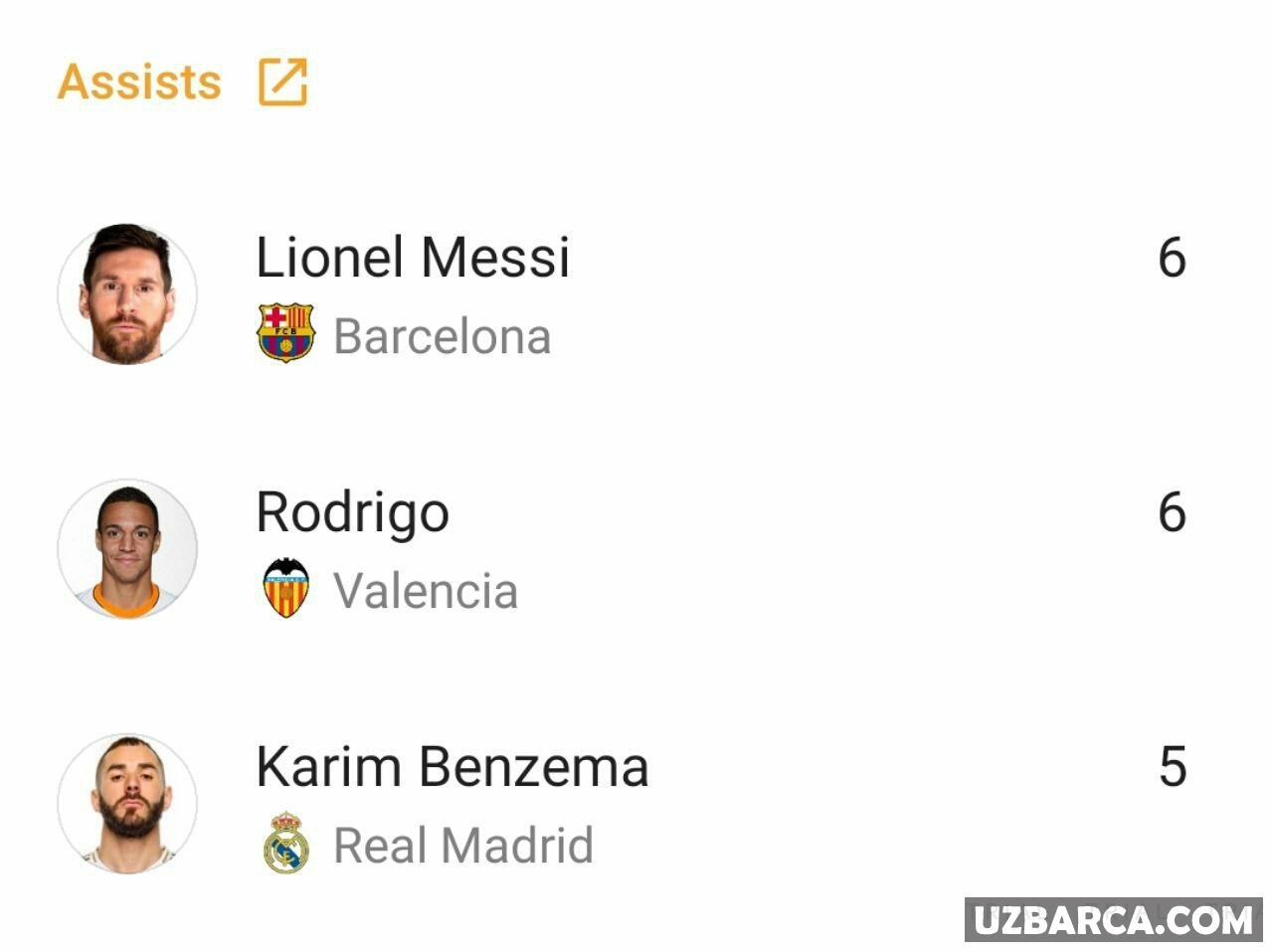Ayni damda La ligadagi assistlar ro'yhati TOP3