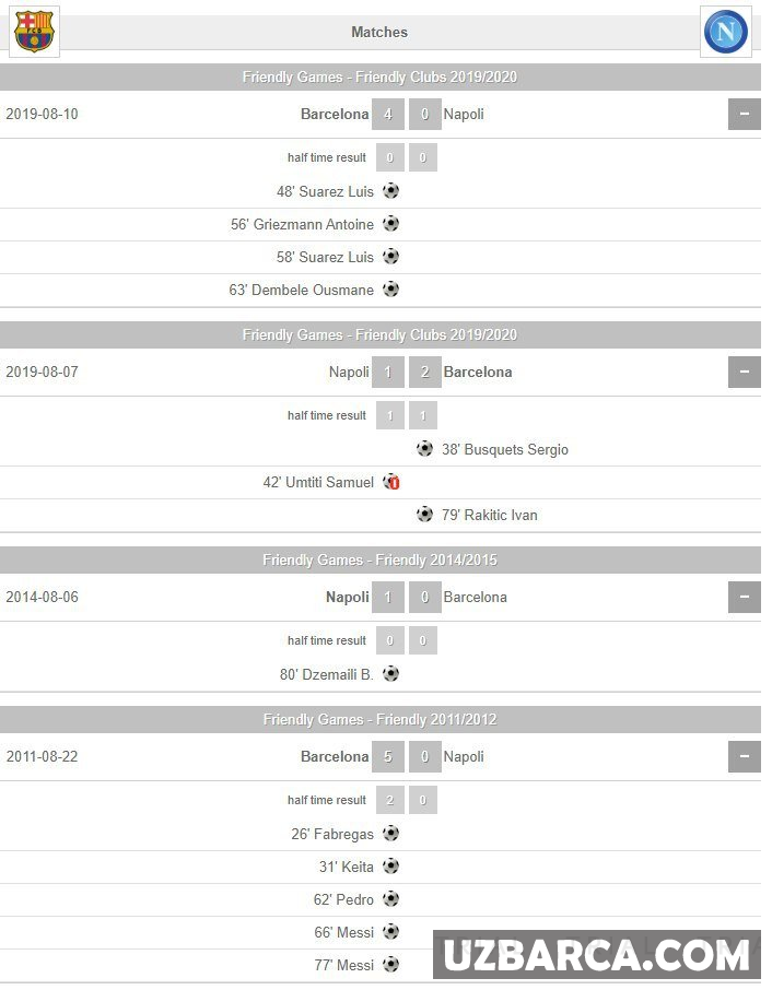 "Barcelona" va "Napoli" faqat o'rtoqlik uchrashuvlarida duch kelishgan