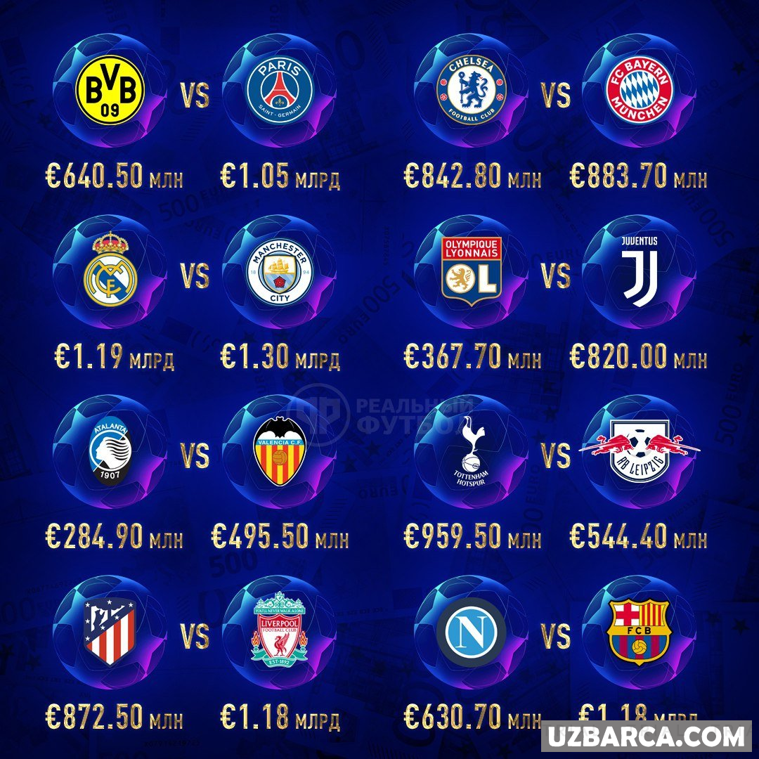 Chempionlar Ligasi 1/8 final bosqichi juftliklari tarkibining qiymati