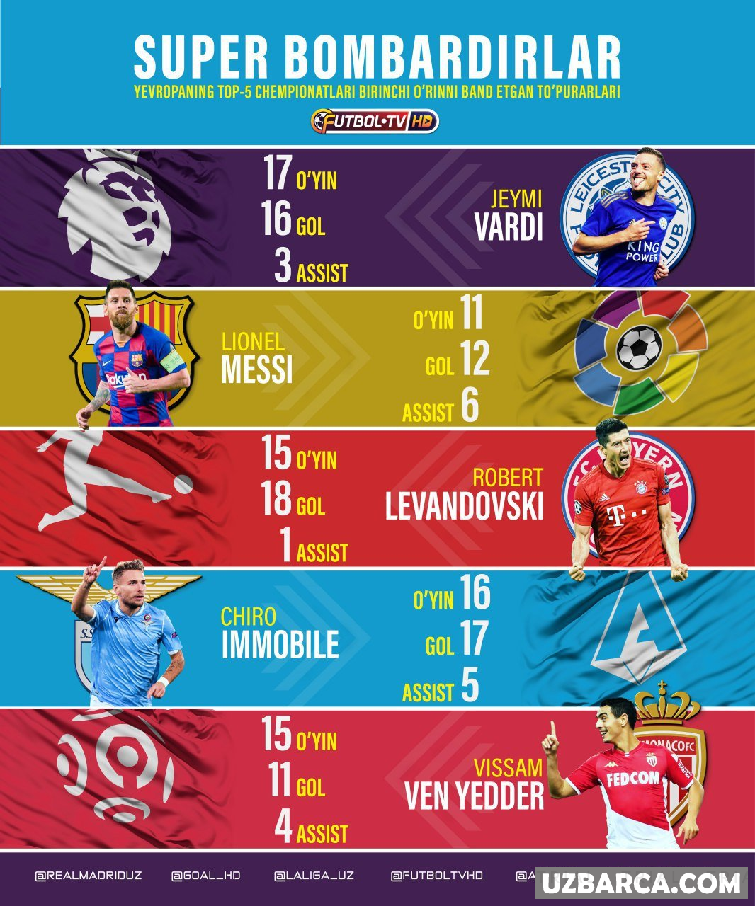 TOP-5 chempionatning bu mavsumdagi eng yaxshi to'purarlari