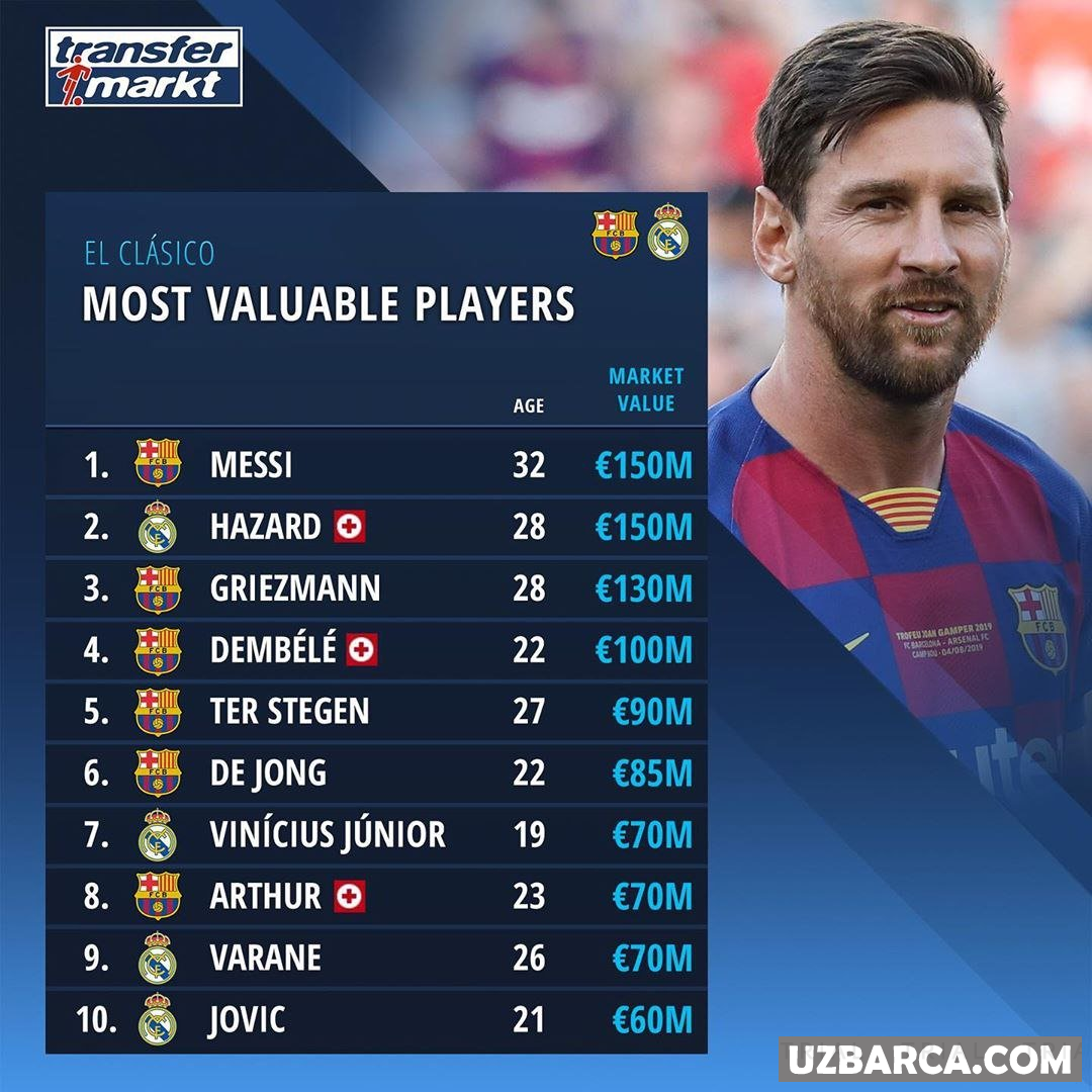 "Real Madrid" va "Barselona"ning eng qimmat futbolchilari
