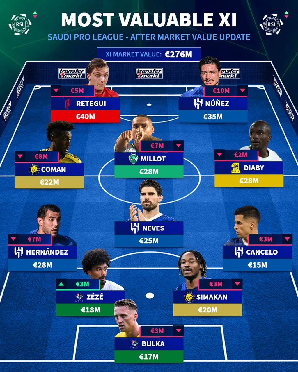 Transfermarkt internet-portali Saudiya Arabistoni chempionatida harakat qilayotgan futbolchilarning transfer narxlarini yangiladi.