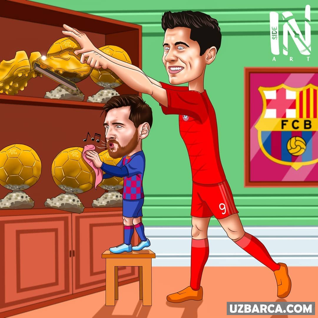 Karikatura INSIDE: Lewandowski o'zining ushbu mavsumdagi 30-golini kiritdi. Bu vaqtda esa Leo Messi "Oltin to'p" bilan ovora