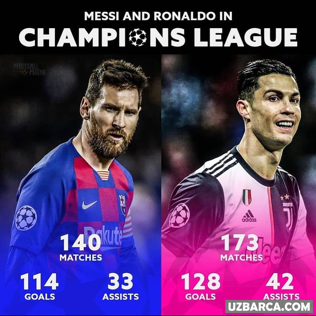 Lionel Messi va Krishtianu Ronalduning Chempionlar Ligasidagi statistikasi